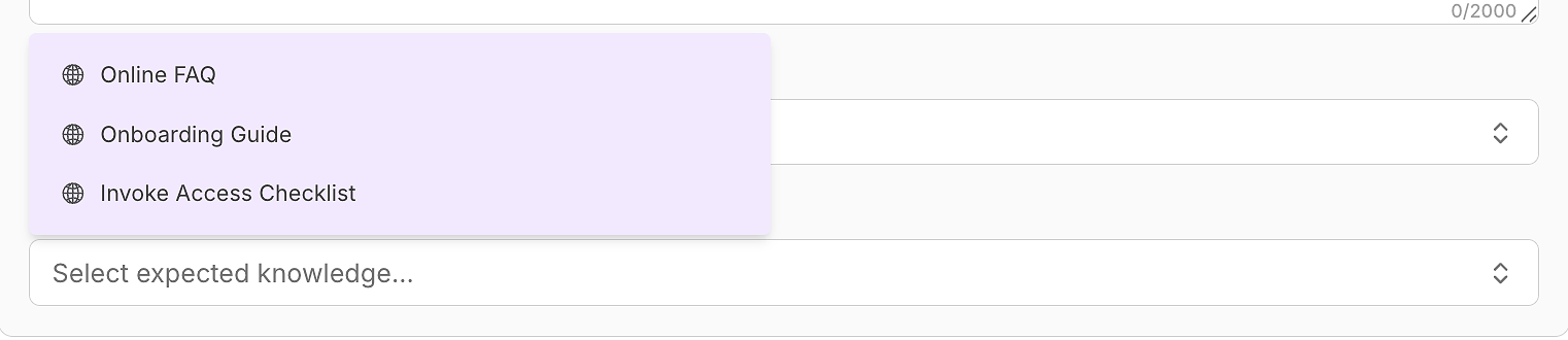 Expected knowledge - which internal knowledge sources must be referenced (for example: onboarding guides, policy checklists, FAQs)
