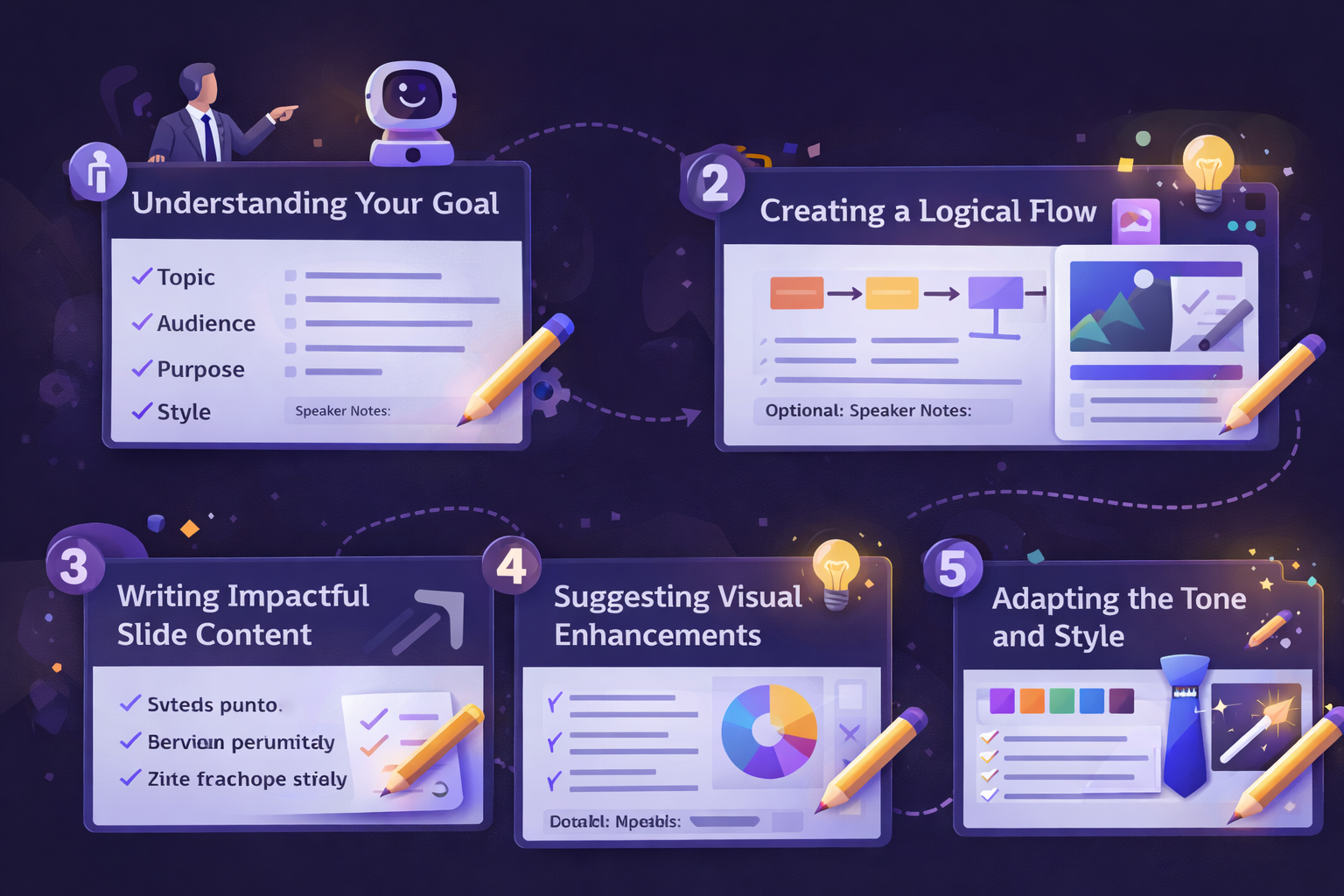 Explore how your Presentation Creator organizes ideas, builds slide structure, and creates clear, engaging content step-by-step.